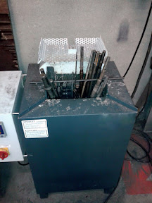 Na het uitsmeden komt de volgende fase, het staal is door het verhitten zacht geworden en moet opnieuw worden gehard. De beitels worden opnieuw verhit en dan in speciale hardingolie plots afgekoeld. De juiste temperatuur is ook hier van belang. Te warm en er ontstaat weer breuk, te koud en de beitel wordt te zacht en buigt krom.